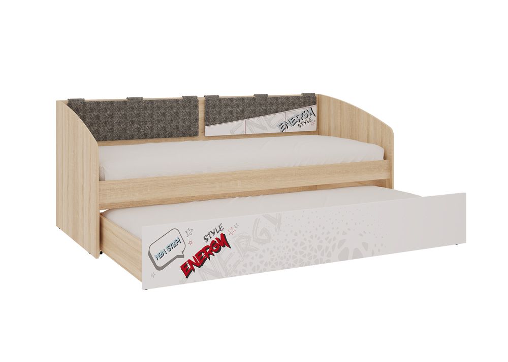 Дополнительное удобное спальное место или большой выдвижной ящик для хранения постельного белья и игрушек, на выбор, решать вам. Стильный принтерный рисунок на фасаде, и карманах. Чехлы подушек съемные, что позволит обеспечить чистоту и порядок.