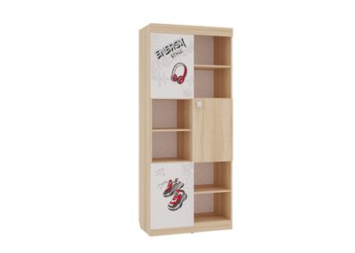 Стеллаж с открытыми и закрытыми полками идеально подойдет для книг, игрушек и мелочей. Эффектный принтерный рисунок на фасадах выдержан в общем стилистическом решении. Рисунок устойчив к истиранию и ультрафиолету. Детская «Энерджи»- все, что нужно для современного подростка!