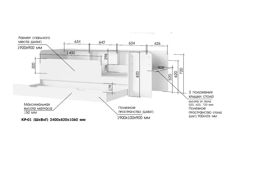 Габаритные размеры (Ш*В*Г): 2400*820*1060 мм