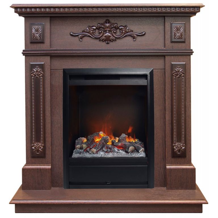 Электрический камин в сборе с очагом Olympic 3D. Портал изготовлен из МДФ, в цвете DN-F817 "темный орех".