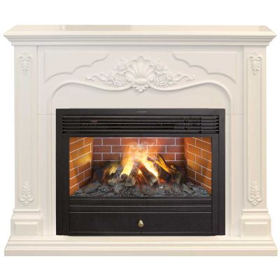 Электрический камин в сборе с 3D очагом Novara 26. Обрамление изготовлено из МДФ в цвете "белый дуб" WT-P511