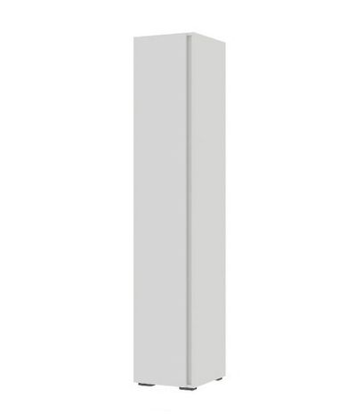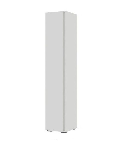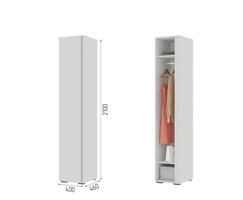 Глухой пенал состоит из секции с хромированной штангой для одежды на вешалках, верхней и нижней полок для хранения вещей.
