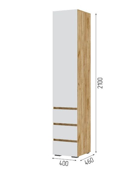 Гостиная ХЕЛЕН - Пенал закрытый ПН 03 Дуб Крафт золотой/Белый Шагрень