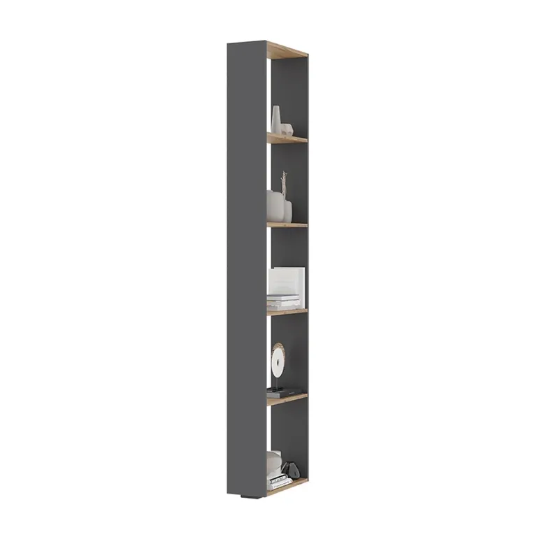 Торцевой стеллаж — это универсальный модуль с открытыми полками, который крепится к корпусу модуля из шкафной группы и пеналов. Может использоваться как отдельно стоящий стеллаж с возможностью зонирования помещения.