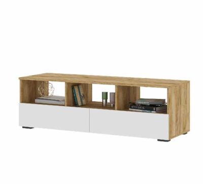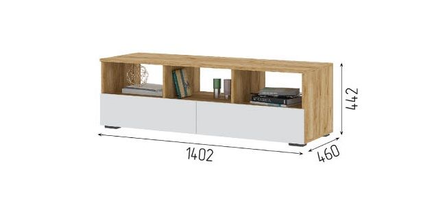 Тумба под ТВ имеет открытые три полки и два выкатных ящика. В сочетании с комодами и пеналами дает возможность создать неповторимые комплекты интерьера.