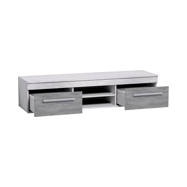 Мебель под ТВ в спокойной сероватой гамме идеально впишется в современный городской интерьер. Фасады ящиков "под бетон" хорошо обыгрывают серебристые ручки из массива дерева. Ящики комплектуются шариковыми направляющими полного выдвижения, что обеспечивает им легкую простую установку и максимальное использование полезной площади ящика. Глубина ящика 40 см, высота 17 см, ширина 51 см. Регулируемые опоры позволяют компенсировать незначительные неровности пола.