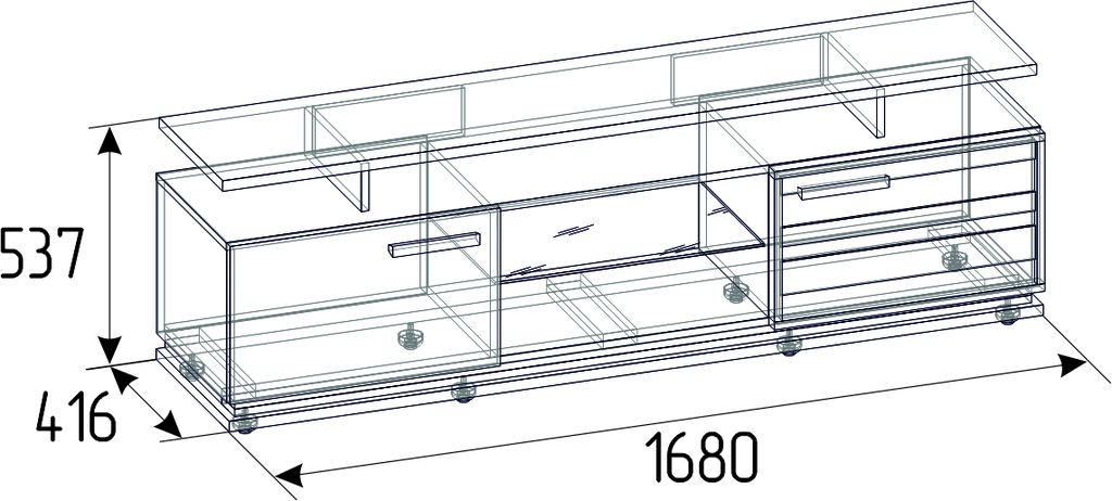 Стильная и аккуратная тумба гармонично впишется в интерьер гостиной. Визуально легкая конструкция не загромождает пространство и делает его более функциональным. Динамику Тумбе ТВ задает комбинация открытых поверхностей и глухих фасадов. Откидные фасады на кронштейнах. На ней без труда поместится телевизор с диагональю до 60''. Завершающий стильный элемент тумбы под телевизор - составной контрастный цоколь.