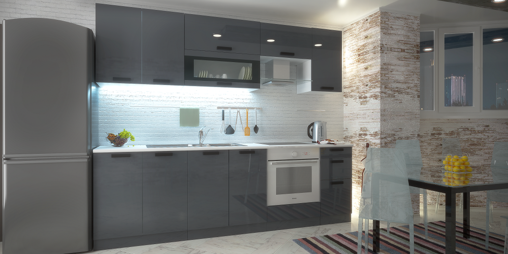 Стоимость указана за погонный метр данной кухни в базовой комплектации без учёта цены столешницы, техники и мойки со смесителем.