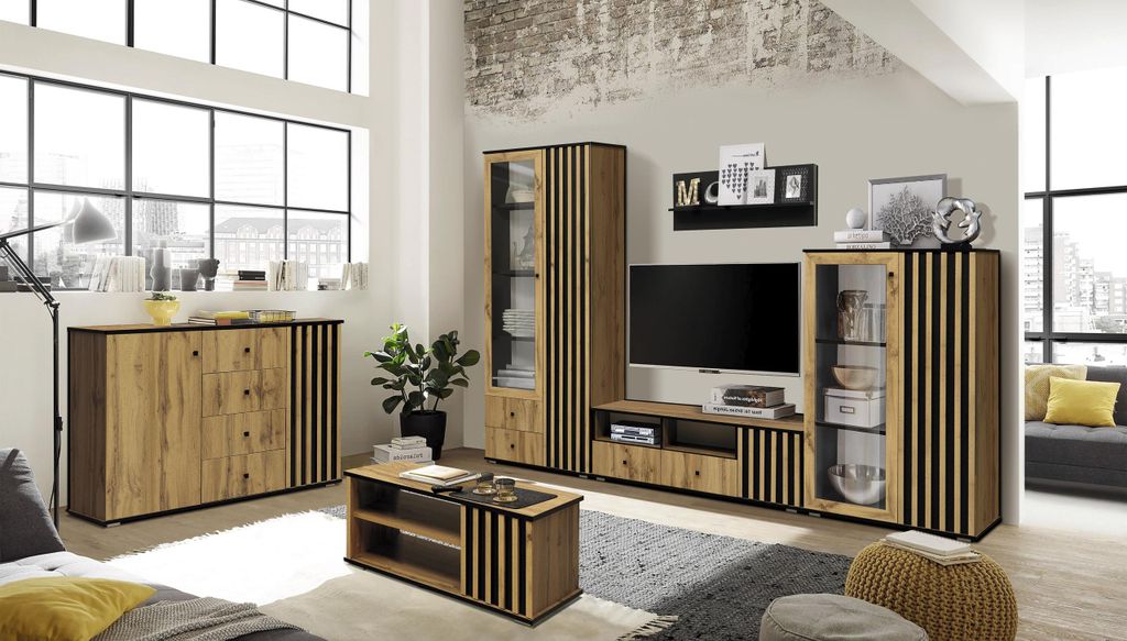 Композиции гостиной ЛИБЕРТИ (опора 20мм) Дуб Вотан/Черный