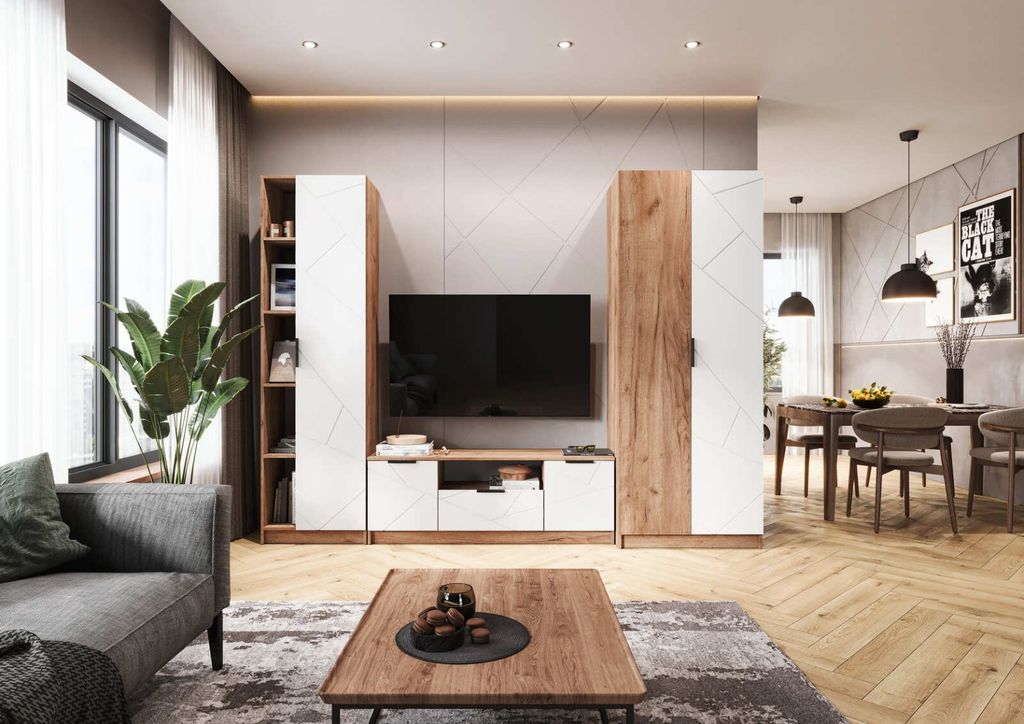 Композиции Гостиной ОРЕГОН Дуб Крафт Табачный/Белый супермат