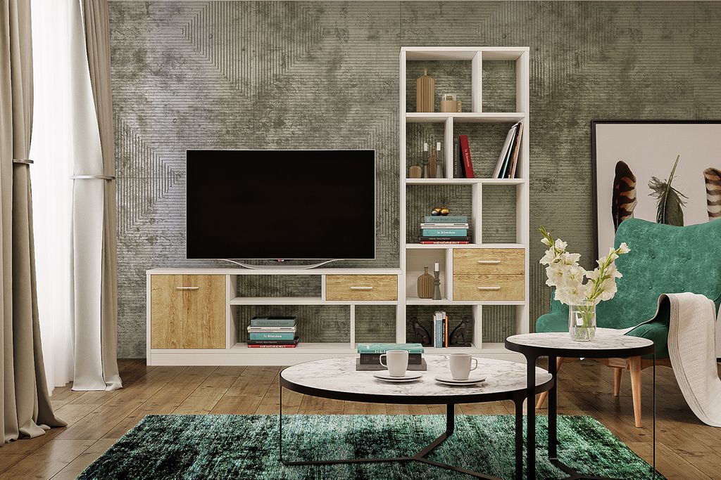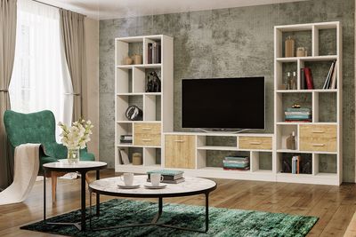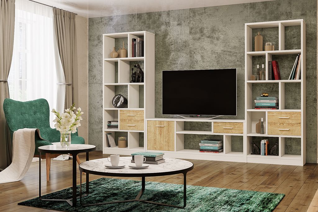 Композиции гостиной ВИКТОРИЯ Белый структурный/Дуб Роше