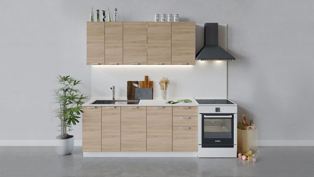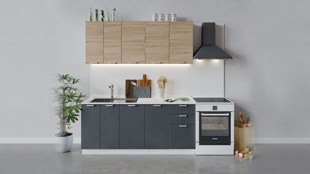 Стоимость указана за погонный метр данной кухни в базовой комплектации без учёта цены столешницы, техники и мойки со смесителем.