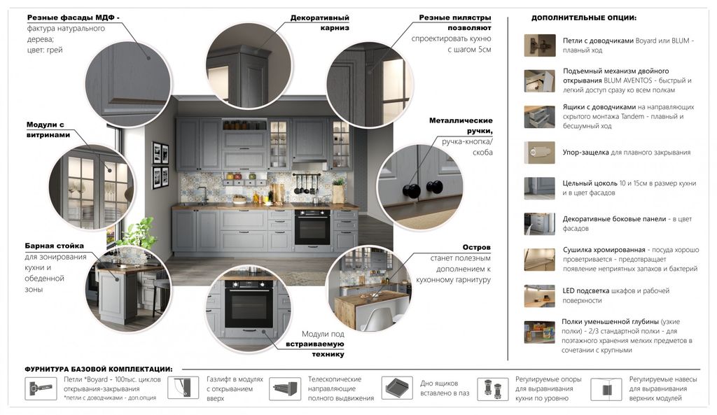 Композиции Модульной кухни Равенна Роял Грей