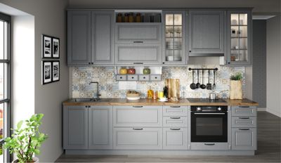 Стоимость указана за погонный метр данной кухни в базовой комплектации без учёта цены столешницы, техники и мойки со смесителем.