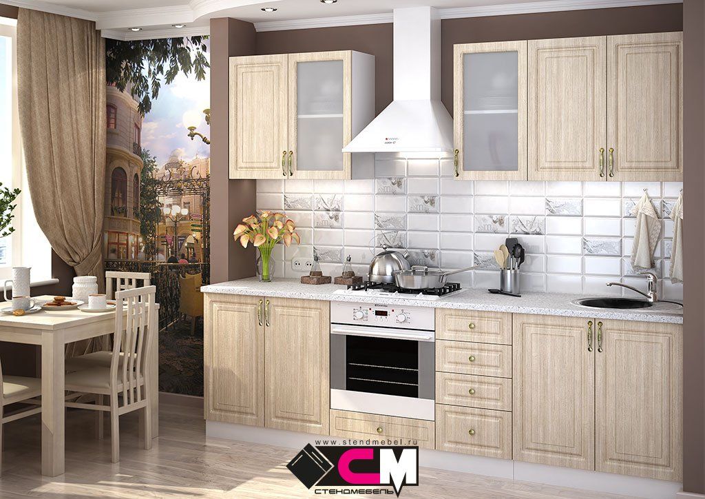 Стоимость указана за погонный метр данной кухни в базовой комплектации без учёта цены столешницы, техники и мойки со смесителем.