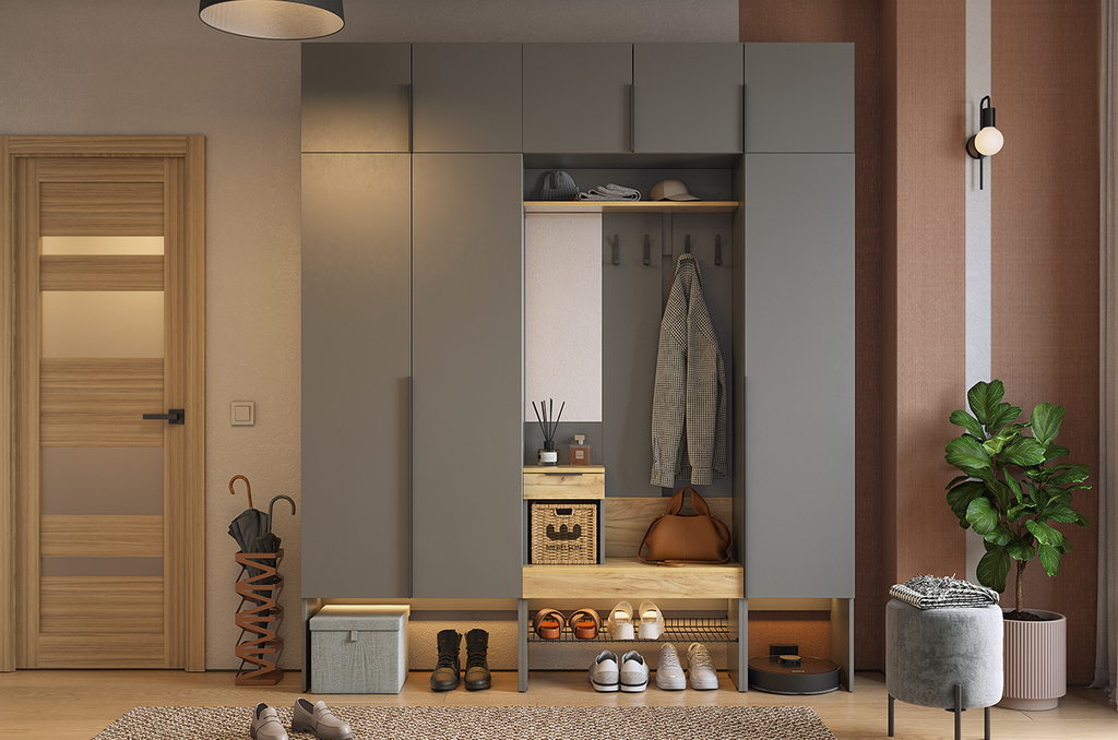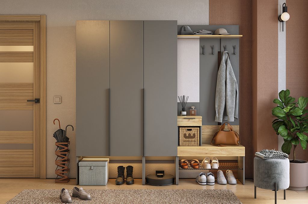 Композиции прихожей БАСКО Графит/Дуб Крафт золотой