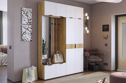 Композиции Прихожей БЕРИ Дуб Крафт золотой/Белое дерево