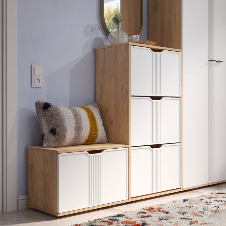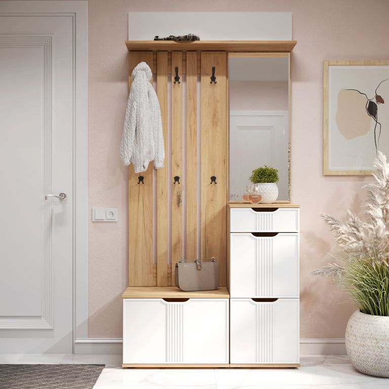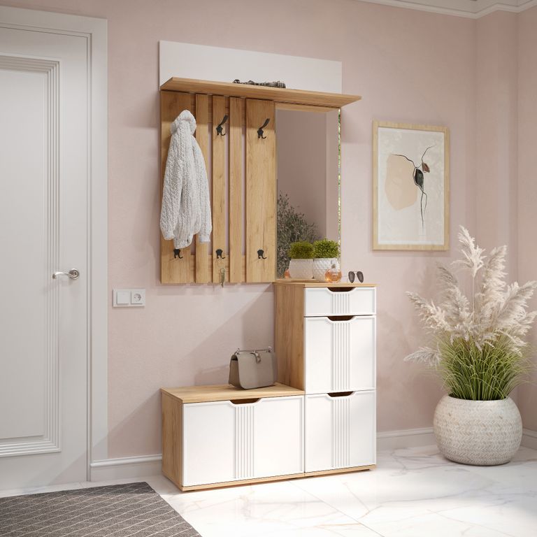 Композиции Прихожей ЭМИЛИЯ Дуб Крафт золотой/Меренга