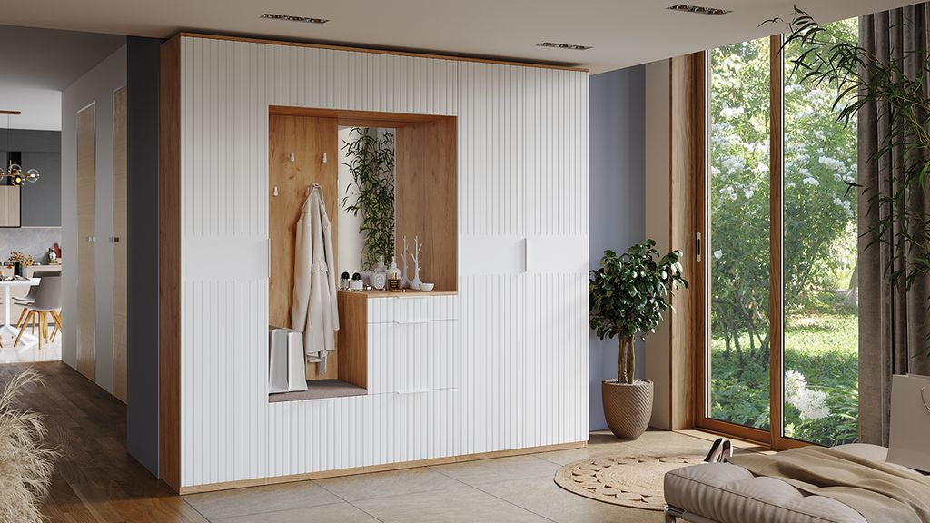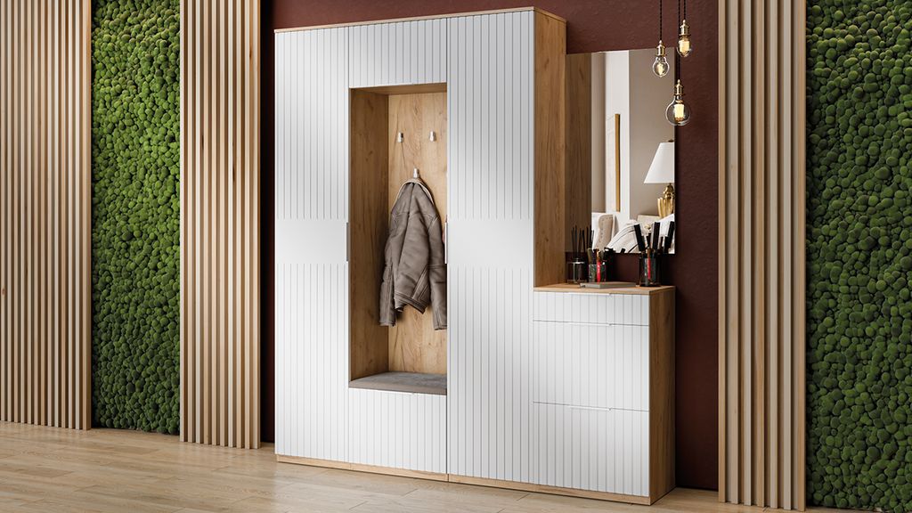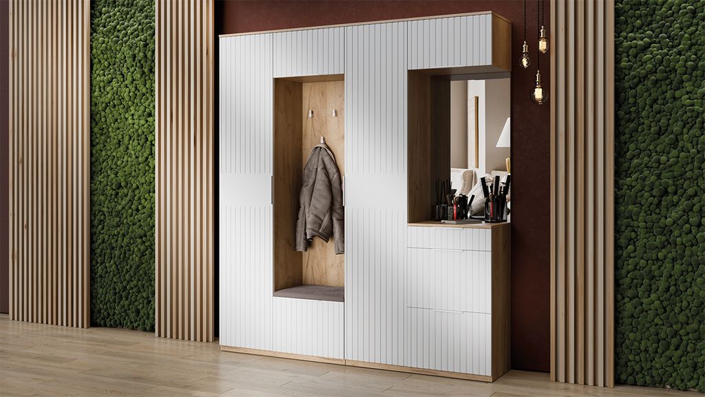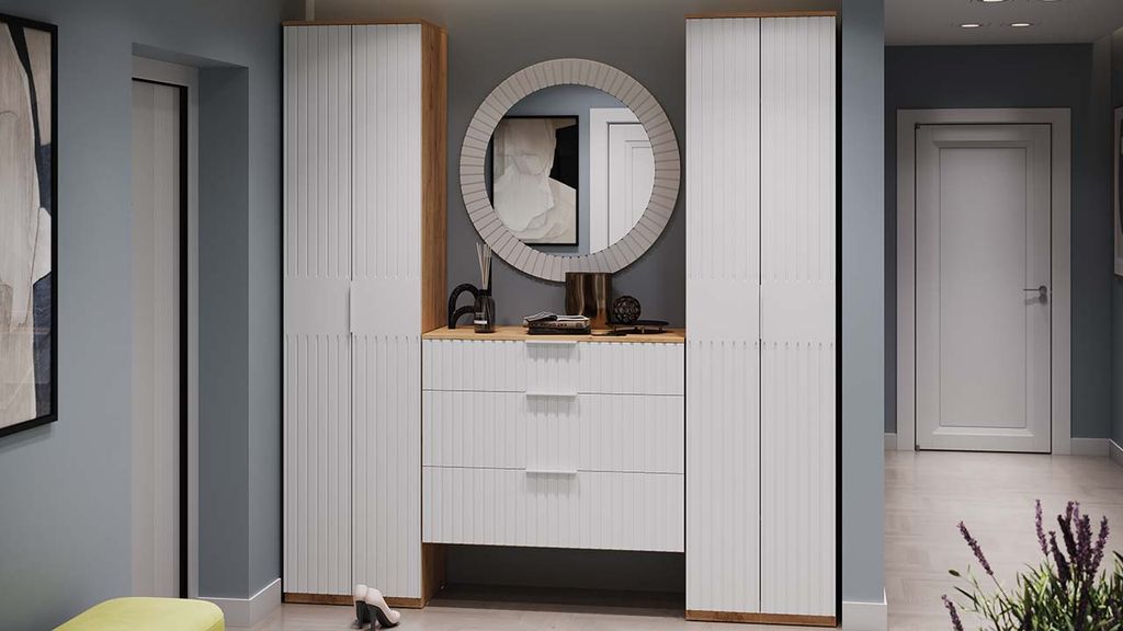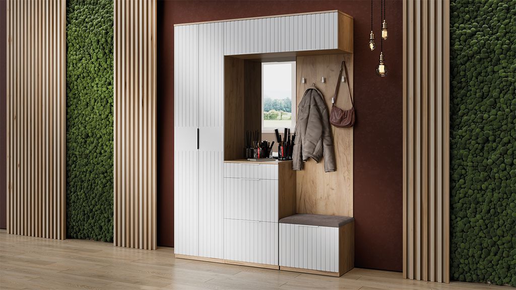 Композиции Прихожей ХИЛТОН Дуб Крафт золотой/Белый матовый
