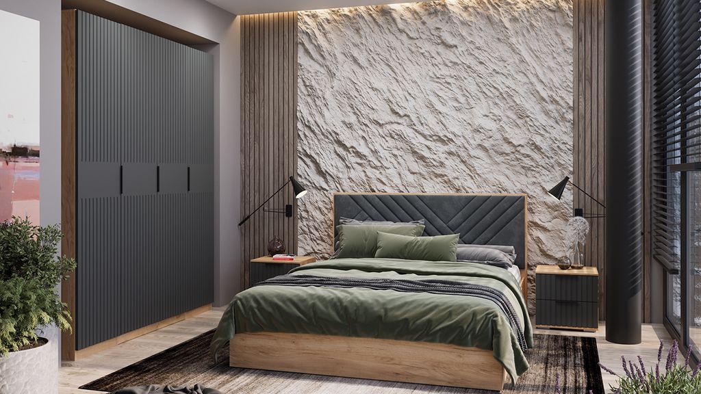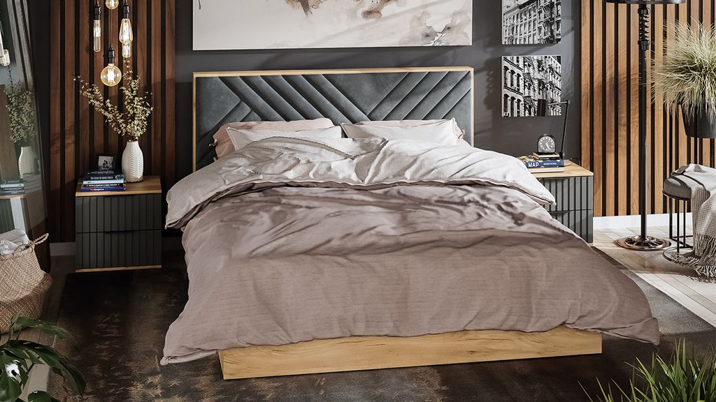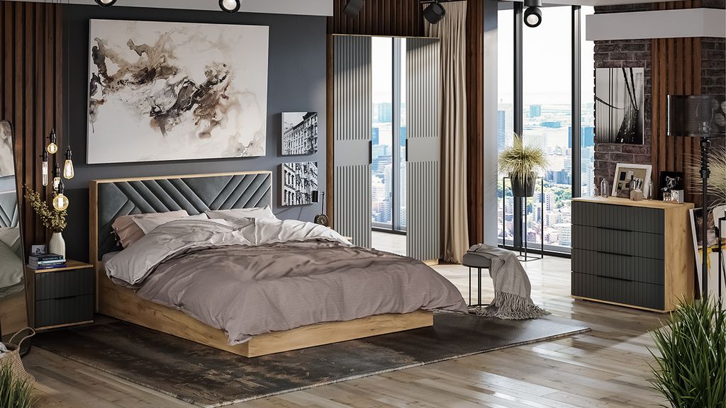 Композиции Спальни ХИЛТОН Дуб Крафт золотой/Велюр серый