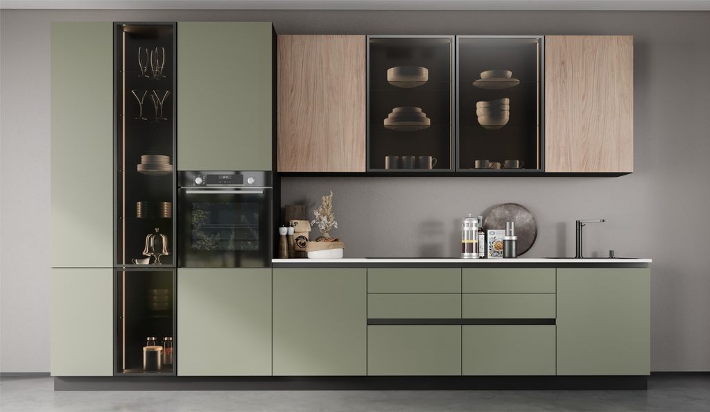 Фасады МДФ пленка ПВХ "лайт хаки", фасады ЛДСП Egger "Дуб каселла натуральный"