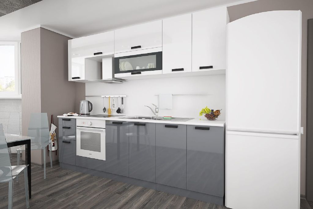Стоимость указана за погонный метр данной кухни в базовой комплектации без учёта цены столешницы, техники и мойки со смесителем.