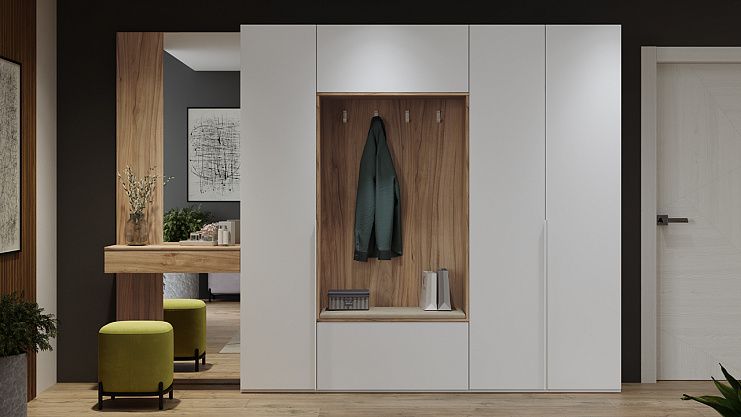 Композиции Прихожей ПОРТО Белый жемчуг/Яблоня Беллуно/Белый софт