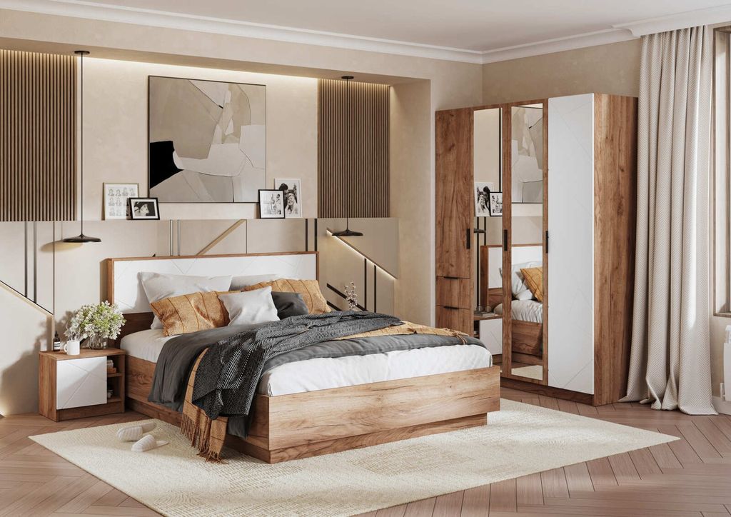 Композиция Спальни ОРЕГОН Дуб Крафт Табачный/Белый супермат