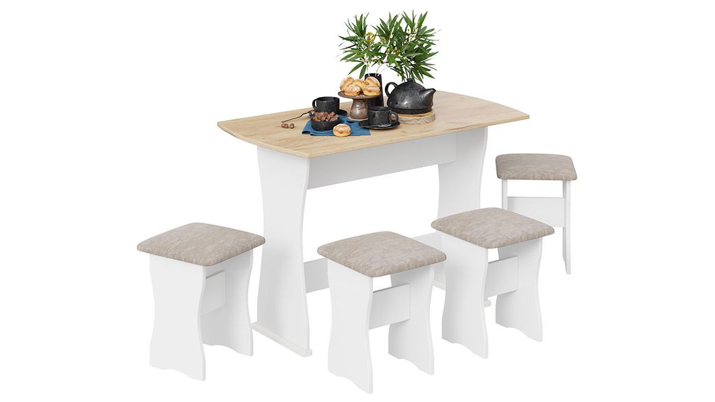 Обеденная группа тип 1 Белый/Дуб крафт золотой/Иск.замша Latte