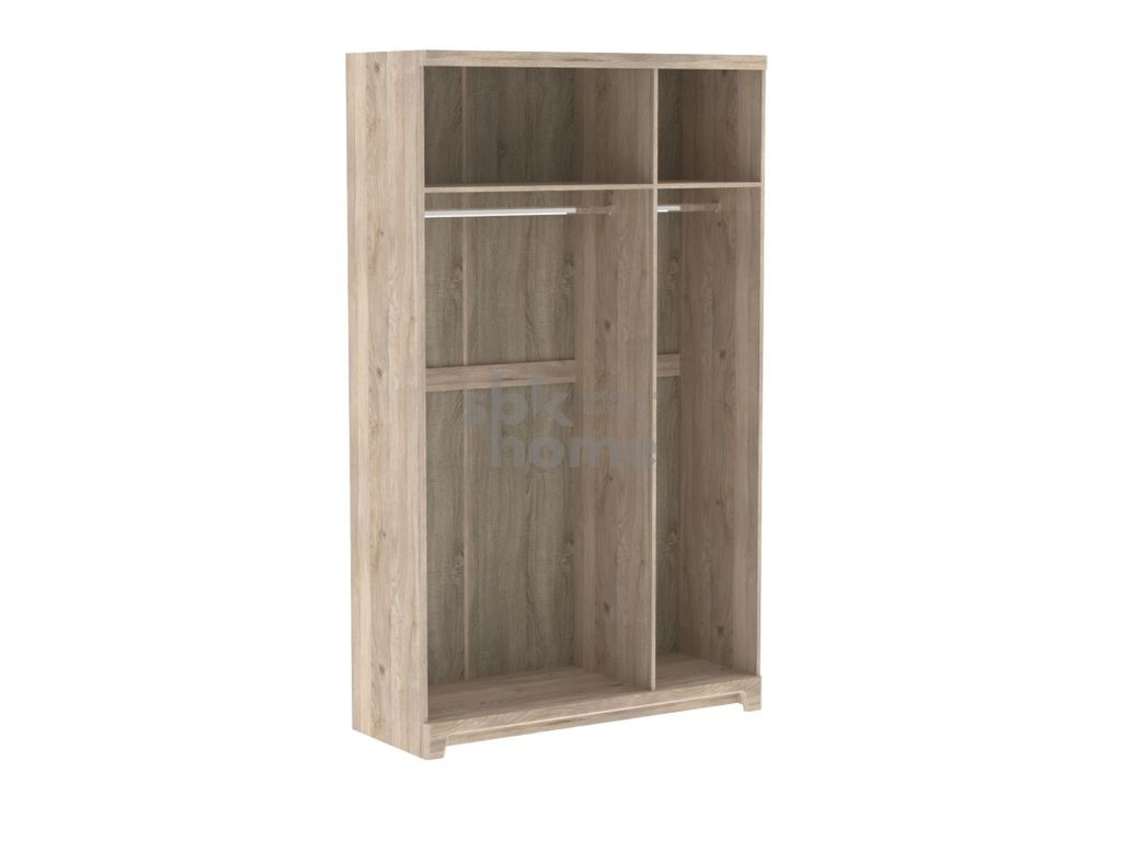 Шкаф разделен на две части. В них располагаются вверху: полка и штанга для вешалок.