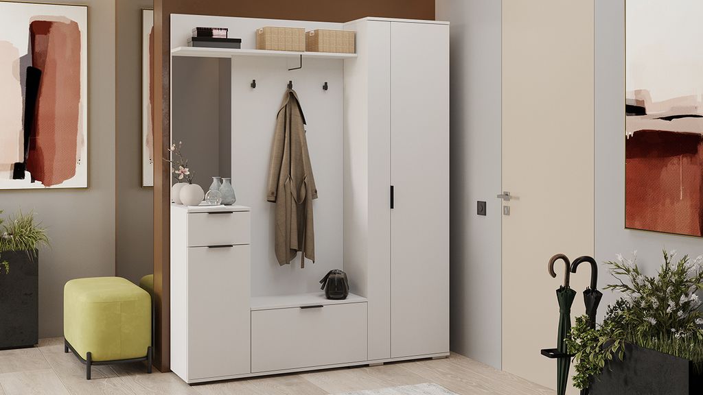 Прихожая Эвита состоит из Шкафа для одежды и Секции комбинированной (можно приобрести отдельно).