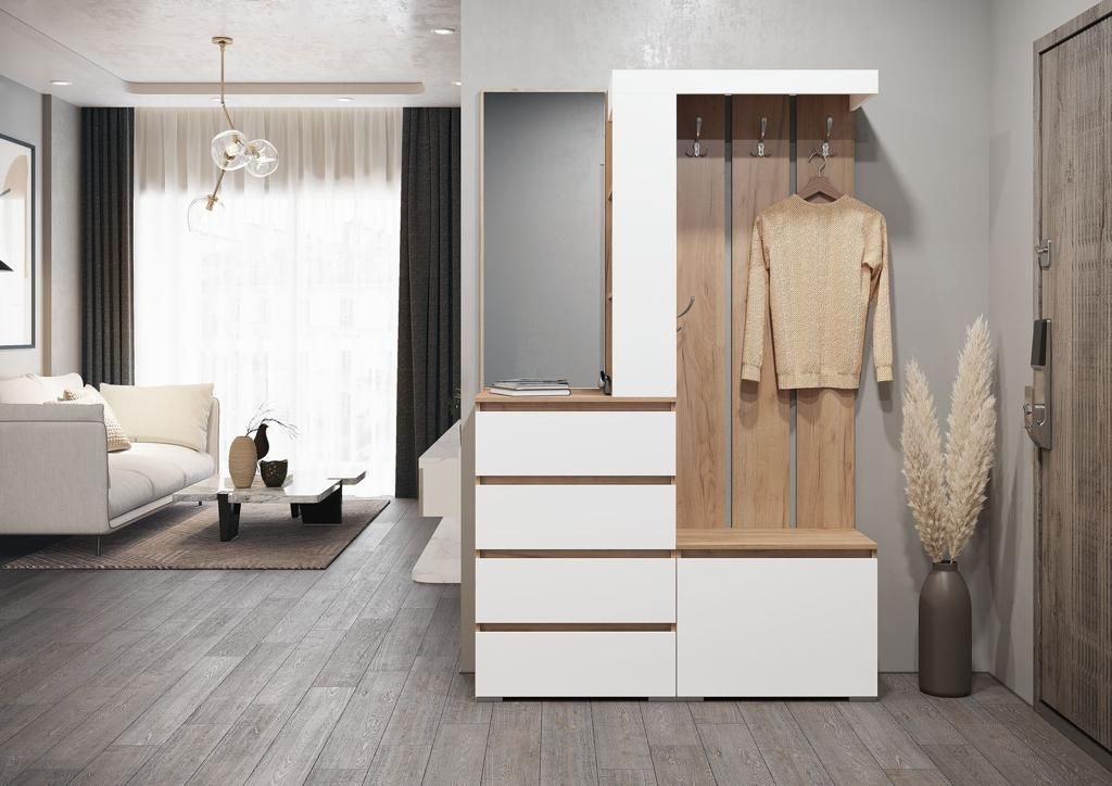 Прихожая ХЕЛЕН Дуб Крафт золотой/Белый Шагрень