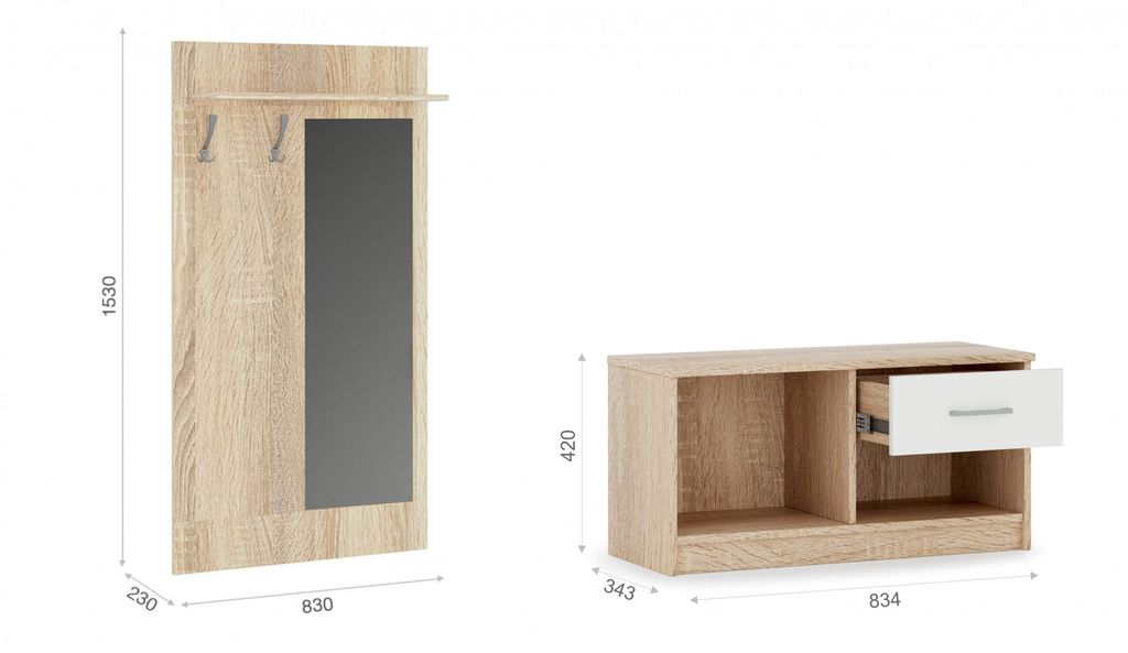 Вы сможете повесить одежду и сумку на вешалку, на верхнюю полку разместить шляпки и другие головные уборы, в нижнее отделение с полками поставить обувь и положить нужные для Вас вещи.