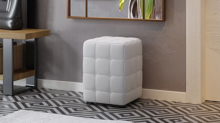 Декор. Пуф имеет интересное дизайнерское решение, его обивка выполнена в виде имитации каретной стяжки, поэтому он станет незаменимым элементом, как для роскошных классических интерьеров, так и для стиля минимализм. Новые цвета подобраны специально под большинство кроватей нашего ассортимента, позволяя без труда дополнить коллекцию спален и детских комнат.