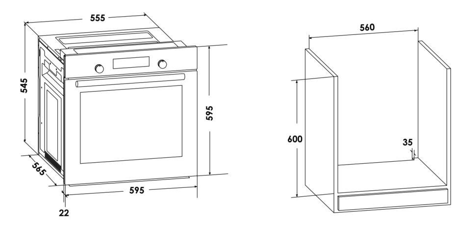Электрический независимый духовой шкаф, Класс А, Объем 65 л, 6 режимов, Механический таймер, Конвекция, гриль. Стандартные переключатели.