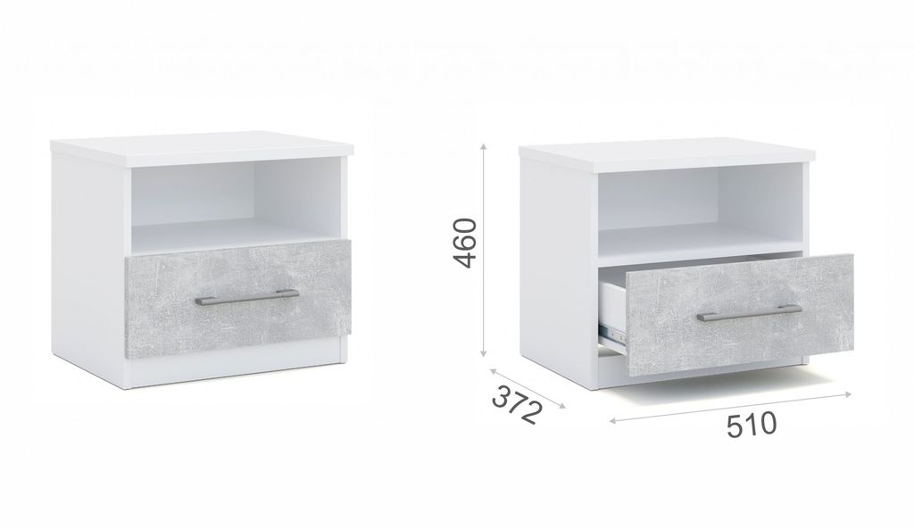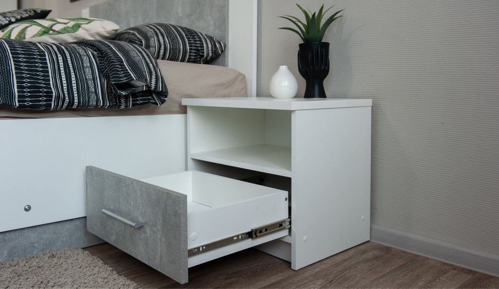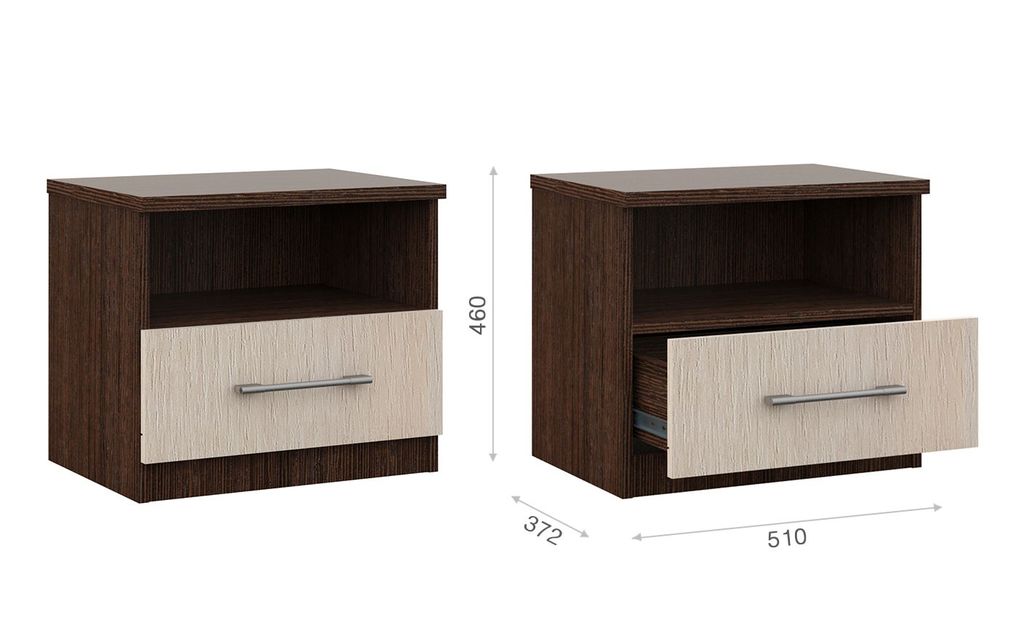 Прикроватные тумбы с двумя ящиками на телескопических направляющих - поместят в себя все вещи, которые важно иметь под рукой - телефон, светильник или любимая книга.