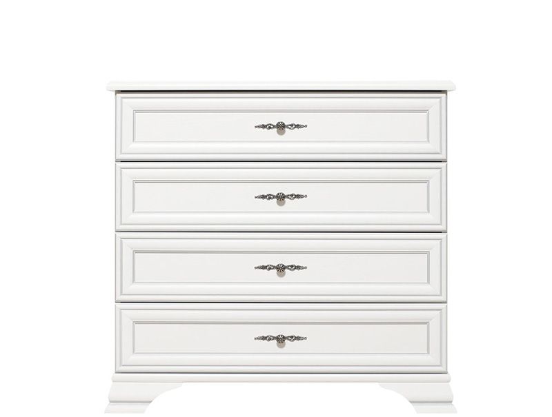 Комод имеет четыре просторных выдвижных ящика с металлической ручкой. Внутри вы сможете удобно разместить одежду, постельное белье и другие вещи.