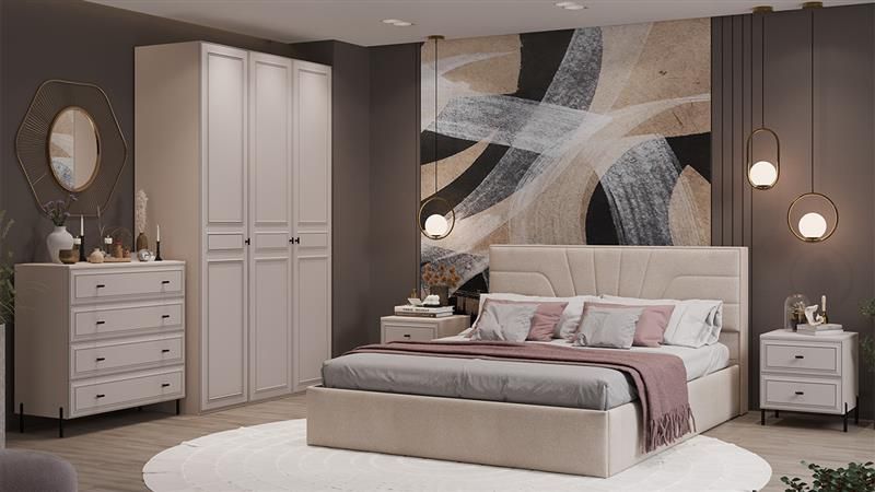 Спальня ПАНДОРА - Кровать c подъемным механизмом Тип 1 Велюр Мокко светлый