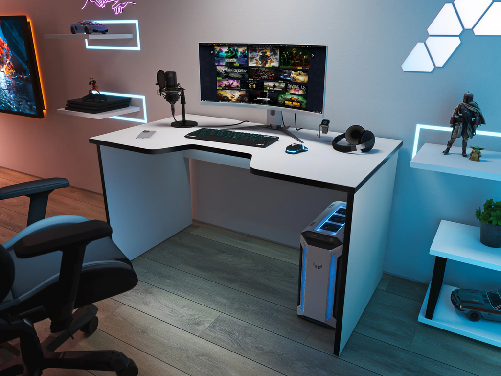 Игровой компьютерный стол С-240 предназначен для эксплуатации в офисах, образовательных учреждениях, а также домашних условиях. Благодаря своей форме удобен для долгой работы с компьютером.