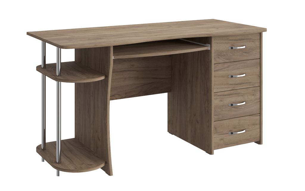 Компьютерный стол С-222БН предусматривает место для монитора, имеются четыре ящика, выдвигающаяся полка для клавиатуры и место для системного блока.