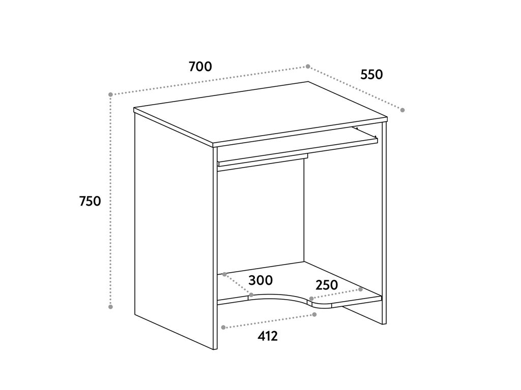 Компьютерный стол С-233 предусматривает место для монитора, имеются выдвигающаяся полка для клавиатуры и место для системного блока.