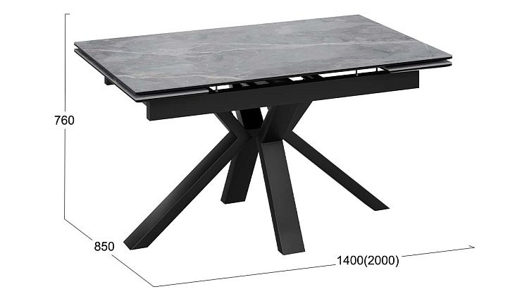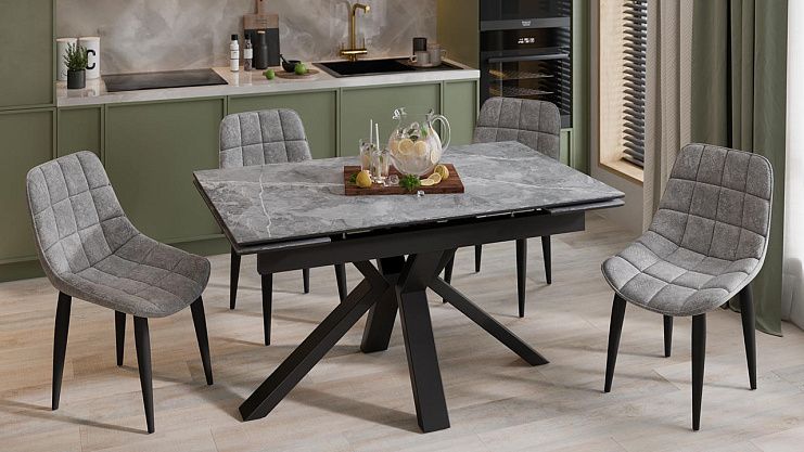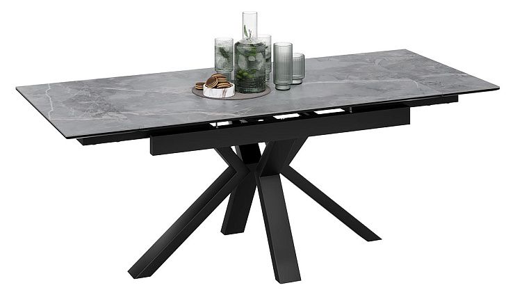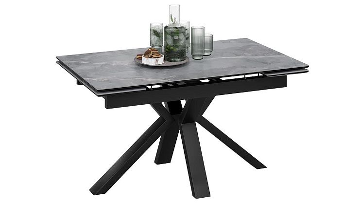 Стол обеденный Дерби Тип 1 Черный муар/Керамика матовая серый мрамор