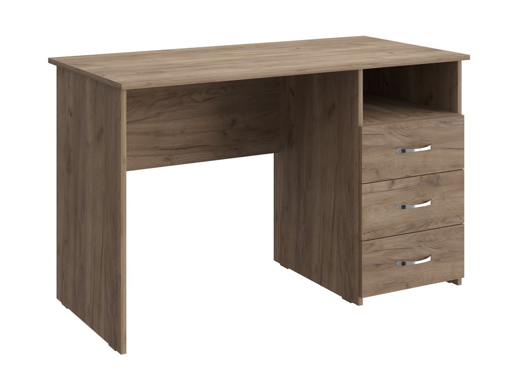 Оборудован нишей и тумбой с тремя выдвижными ящиками.