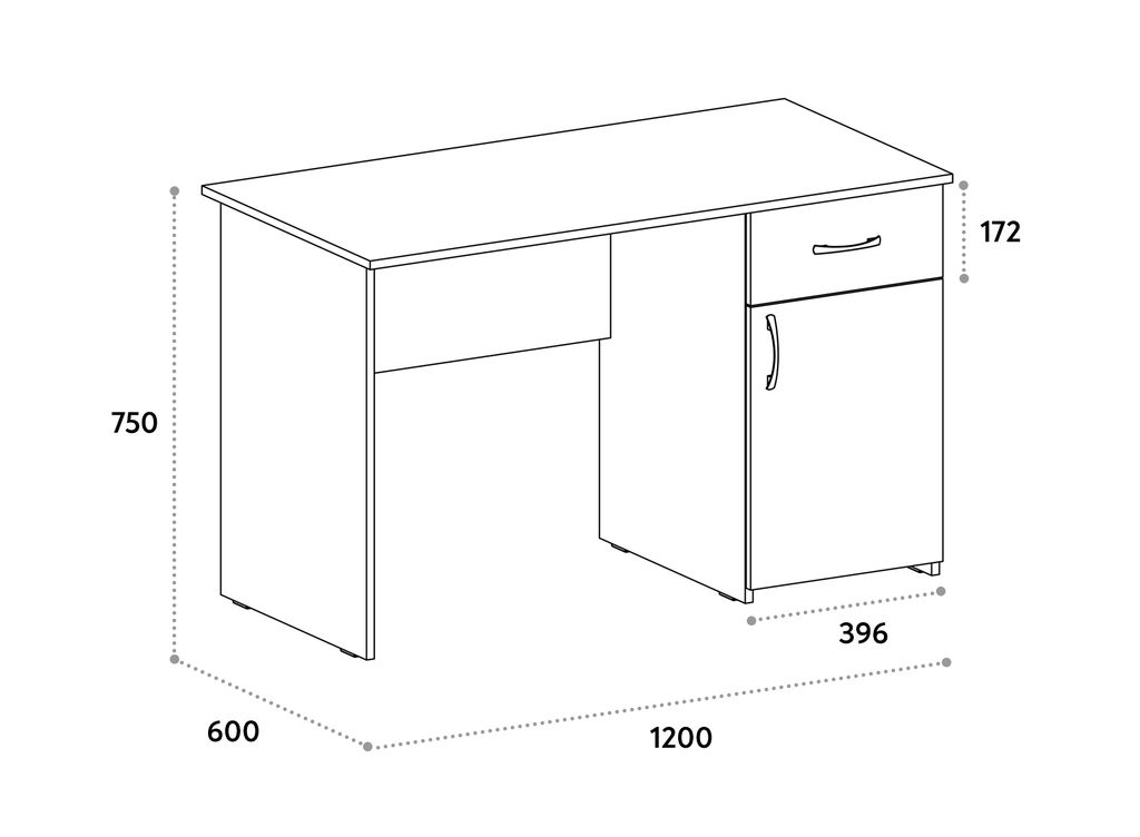 Оборудован одним выдвижным ящиком и тумбой с полкой.
