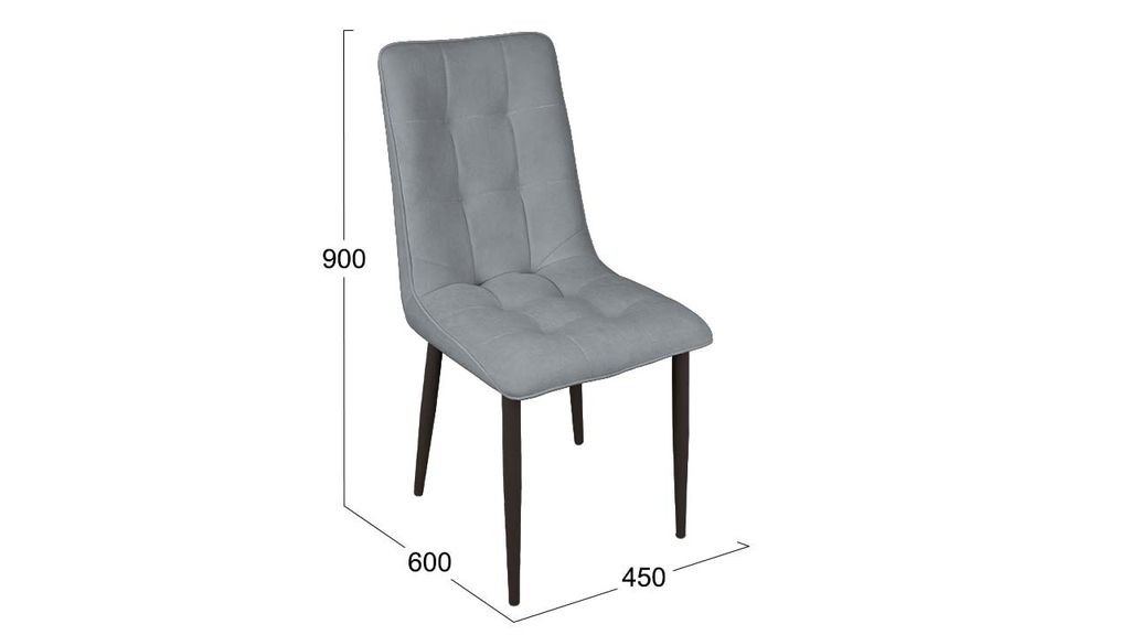 Материалы. Опора изделия выполнена из металла, окрашена в матовый глубокий цвет «Черный муар», который сейчас очень популярен. На ножках предусмотрены пластиковые заглушки, которые придают стулу дополнительную устойчивость и защищают пол от царапин. Основой мягкого элемента служит металлический каркас и ППУ. Для обивки стула используется благородный микровелюр BRENDY.