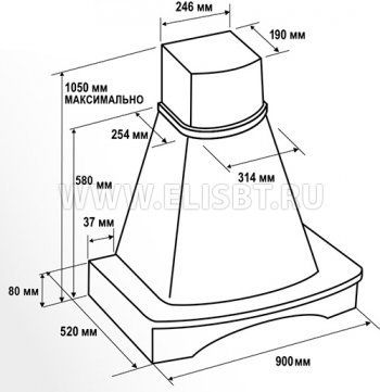 Размеры прибора (ВхШхГ) : 580/1050х900х520 мм.
